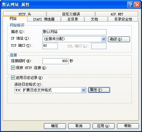 Internet信息服務(wù)的日志文件會隨著使用慢慢增大,增大后就會占用一定的磁盤空間,對電腦的操作造成影響,Internet信息服務(wù)的日志文件在默認(rèn)網(wǎng)站的屬性中可以查看如下圖所示