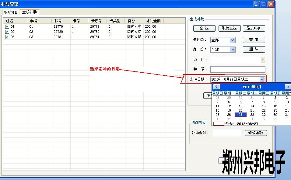 2.然后在生成補(bǔ)助時,選擇宏沖的日期