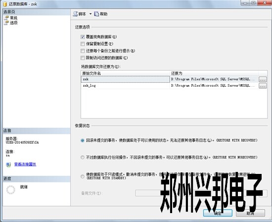 把導入的bak文件勾選上,在指定了要還原的*.bak文件以后,選項---->設置還原選項--->覆蓋現(xiàn)有數據庫(選上),其它默認。