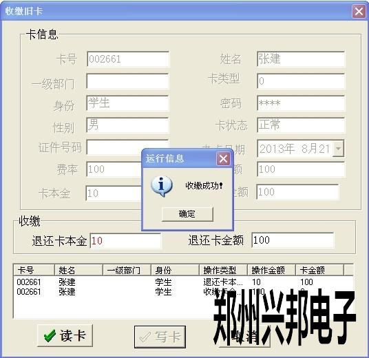 注銷卡就是收繳過的舊卡點擊【讀卡】出現(xiàn)卡片的基本信息后點擊【寫卡】,提示收繳成功后點擊【確定】即可。對于不用的舊卡可以使用此功能進(jìn)行收繳,收繳一定要在數(shù)據(jù)采集完成之后進(jìn)行。