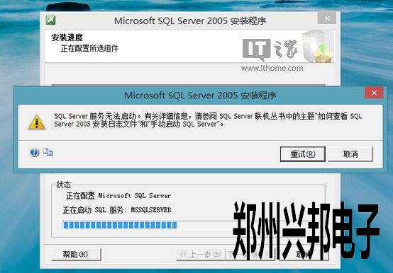 6、當出現(xiàn)Sql Server 2005無法啟動時,這個時候就不先點擊重試或者取消。