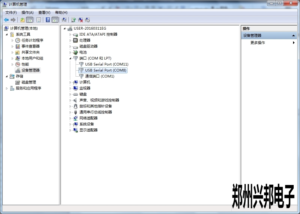 1、單擊計算機—單擊右鍵—管理—設備管理—端口。找到所用讀卡器端口。如下圖: